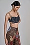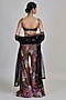 Featuring a black glitch corset in tulle base. It is paired with multi-colored organza sharara pants and a tulle dupatta. Accentuate the set with statement jewellery, embellished heels and a clutch for an elegant look, Perfect for your cocktail, sangeet or engagement ceremony.