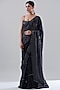 Featuring a navy blue saree in natural crepe base with embroidery. It is paired with a matching soft tulle blouse and a petticoat.