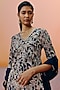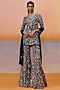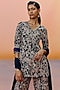 Featuring a navy blue kurta in organza and chiffon base with a v-neck and floral embroidery. It is paired with sharara and a dupatta. Accentuate it with swarovski or pearl jewellery jewellery and block heels for a wedding or sangeet ceremony.