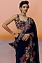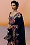Navy Blue Silk Floral Embroidered Saree Set