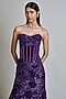 Featuring a purple lehenga in organza base with tonal velvet applique, mirror and sequins detailing. It is paired with a tulle applique corset. Style it with a diamond choker, bold lips, and soft curls for a glamorous evening look, perfect for sangeet functions, wedding or engagement parties.