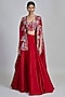 Red Organza Floral Pleated Cape Set