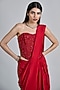 Featuring a red pre-draped saree in silk base. It is paired with a tulle cluster corset. Accentuate the designer saree with statement jewellery, embellished heels and a clutch for an elegant look, Perfect for your engagement, sangeet or cocktail ceremony.