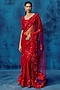 Red Tulle Floral Embroidered Saree Set