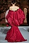Mishru presents a red lehenga in tulle and organza base with sequins detail. It is paired with a velvet corset and a cape having bubble hem. Accentuate the look with muted block heels and a sleek gold ear cuff for a majestic presence at the sangeet.