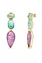 Gold Finish Aqua Green & Light Purple Natural Stone Drop Dangler Earrings In Sterling Silver