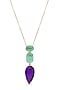 Gold Finish Aquamarine Green & Purple Natural Stone Pendant Necklace In Sterling Silver