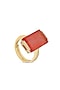 Gold Finish Coral Orange Natural Stone Aztec Adjustable Ring In Sterling Silver