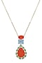 Gold Finish Coral Orange & Sky Blue Natural Stone Peacock Pendant Necklace In Sterling Silver