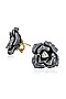 Gold Finish Cubic Zirconia & Black Stone Floral Stud Earrings In Sterling Silver