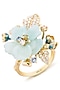 Gold Finish Cubic Zirconia & Blue Quartz Stone Floral Ring In Sterling Silver