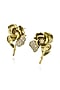 Gold Finish Cubic Zirconia & Champagne Stone Enameled Stud Earrings In Sterling Silver