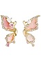 Gold Finish Cubic Zirconia & Pink Shell Butterfly Stud Earrings In Sterling Silver