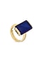 Gold Finish Dark Blue Natural Stone Aztec Adjustable Ring In Sterling Silver