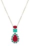 Gold Finish Deep Pink & Cyan Green Natural Stone Peacock Pendant Necklace In Sterling Silver