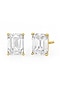 Gold Finish Emerald-Cut Cubic Zirconia Crystal Stud Earrings In Sterling Silver