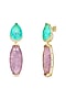Gold Finish Light Blue & Purple Natural Stone Dangler Earrings In Sterling Silver