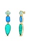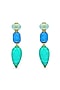 Gold Finish Sky Blue & Dark Green Natural Stone Drop Dangler Earrings In Sterling Silver