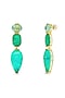 Gold Finish Teal & Emerald Green Natural Stone Drop Dangler Earrings In Sterling Silver