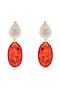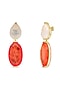 Gold Finish White & Orange Red Natural Stone Dangler Earrings In Sterling Silver