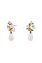 Gold Finish White Pearl Floral Dangler Earrings In Sterling Silver