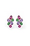 Rose Gold Finish Cubic Zirconia & Multi-Colored Stone Stud Earrings In Sterling Silver