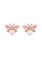 Rose Gold Finish Pink Enameled Butterfly Stud Earrings In Sterling Silver