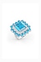 Featuring a white rhodium finish halo ring studded with baguette aqua cubic zirconia crystals, set in 92.5 sterling silver. Perfect for brunch dates, casual outings, office wear, festive lunches or evening get-togethers.