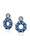 White Rhodium Finish Cubic Zirconia & Blue Topaz Stone Hoop Earrings In Sterling Silver