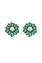 White Rhodium Finish Cubic Zirconia & Emerald Spinel Stone Floral Stud Earrings In Sterling Silver