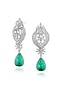 White Rhodium Finish Cubic Zirconia & Green Stone Dangler Earrings In Sterling Silver