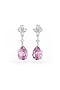 White Rhodium Finish Cubic Zirconia & Pink Stone Dangler Earrings In Sterling Silver