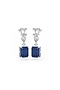 White Rhodium Finish Cubic Zirconia & Sapphire Stone Dangler Earrings In Sterling Silver