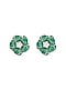 White Rhodium Finish Emerald Stone Floral Stud Earrings In Sterling Silver