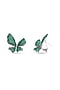 White Rhodium Finish Emerald Spinel Stone Butterfly Stud Earrings In Sterling Silver