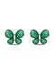 White Rhodium Finish Emerald Butterfly Stud Earrings In Sterling Silver