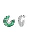 Featuring a pair of white rhodium finish circlets stud earrings studded with emerald green synthetic spinel stones, set in 92.5 sterling silver. It has a butterfly push-back lock closure. Perfect for brunch dates, casual outings, office wear, festive lunches or evening get-togethers.