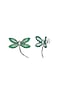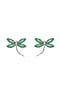 White Rhodium Finish Emerald Spinel Stone Dragonfly Stud Earrings In Sterling Silver
