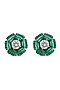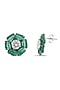 White Rhodium Finish Emerald Spinel Stone Floral Stud Earrings In Sterling Silver