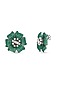 White Rhodium Finish Emerald Spinel Stone Floral Stud Earrings In Sterling Silver