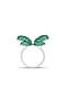 White Rhodium Finish Emerald Spinel Stone Fluttering Wing Ring In Sterling Silver