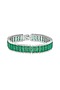 Featuring a white rhodium finish tennis bracelet studded with emerald green synthetic spinel stones, set in 92.5 sterling silver. Perfect for brunch dates, casual outings, office wear, festive lunches or evening get-togethers.