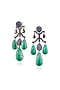 White Rhodium Finish Green & Coral Stone Dangler Earrings In Sterling Silver