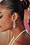 Featuring a pair of white rhodium finish chandelier dangler earrings studded with green cubic zirconia crystals, set in 92.5 sterling silver. It has a push-back lock closure. Perfect for brunch dates, casual outings, office wear, festive lunches or evening get-togethers.