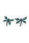 White Rhodium Finish Green Enameled Dragonfly Stud Earrings In Sterling Silver