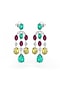White Rhodium Finish Multi-Colored Cubic Zirconia Crystal Chandelier Dangler Earrings In Sterling Silver