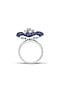 Featuring a white rhodium finish cocktail floral ring studded with sapphire blue spinel stones, set in 92.5 sterling silver. Perfect for brunch dates, casual outings, office wear, festive lunches or evening get-togethers.