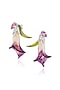 White Rhodium Finish Pink Crystal Zirconia Stud Earrings In Sterling Silver