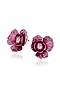 White Rhodium Finish Purple Enameled Floral Stud Earrings In Sterling Silver