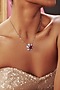 White Rhodium Finish Red Cubic Zirconia Crystal Pendant Necklace In Sterling Silver